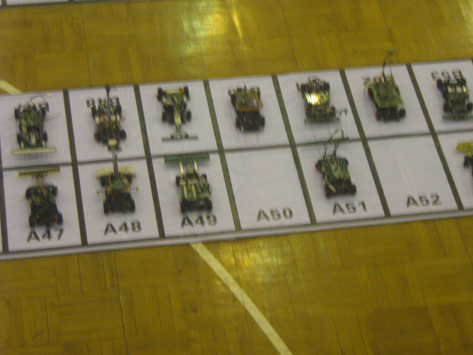 更多的参赛智能汽车,旁边是赛场,还有评委