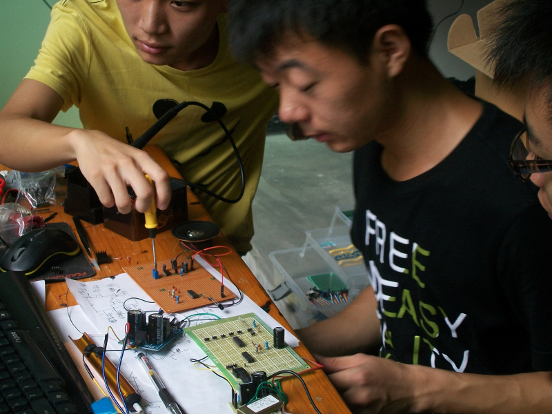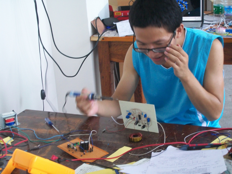 9月4日早上8点,2013年全国大学生电子设计竞赛正式开赛,海南赛区("中跃杯")海南师范大学赛场里,我院经过精心筛选和假期训练选拔出的30支参赛队伍正在奋力拼搏,同学们正在选题、设计方案、领取元器件、制作电路板、焊接、调试,不畏辛苦,干劲十足。物理楼二楼的赛场里,灯火通明,通宵达旦,参赛的同学们正在努力为自己的大学生活写下最值得回忆的一页。