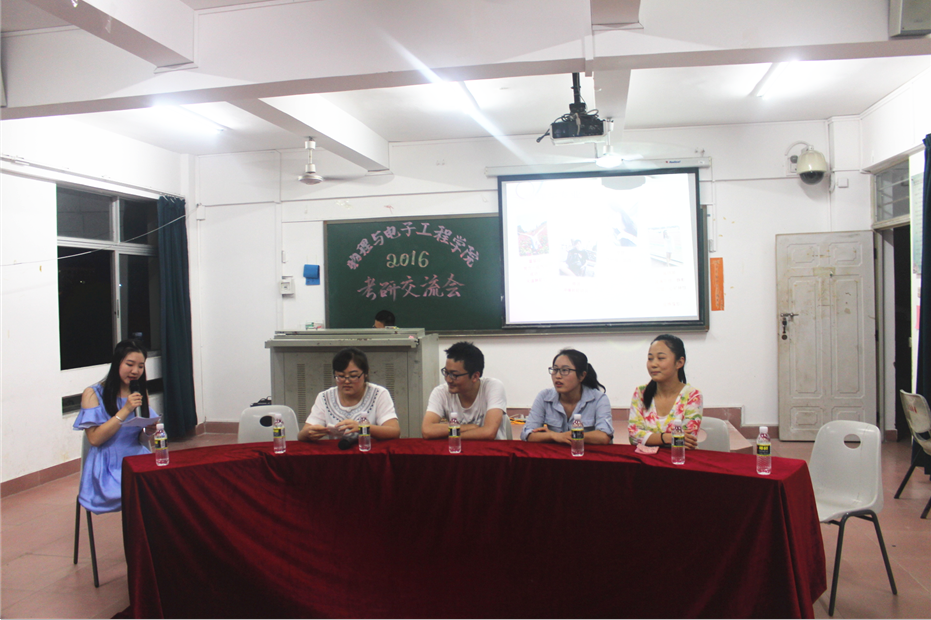 活动伊始,各位同学热情高涨,励志之氛围充满全场,紧接着主持人分别介绍了物电学院各个专业2012级考上研究生的学长和学姐们,并以问答的形式开始了本次考研交流会。