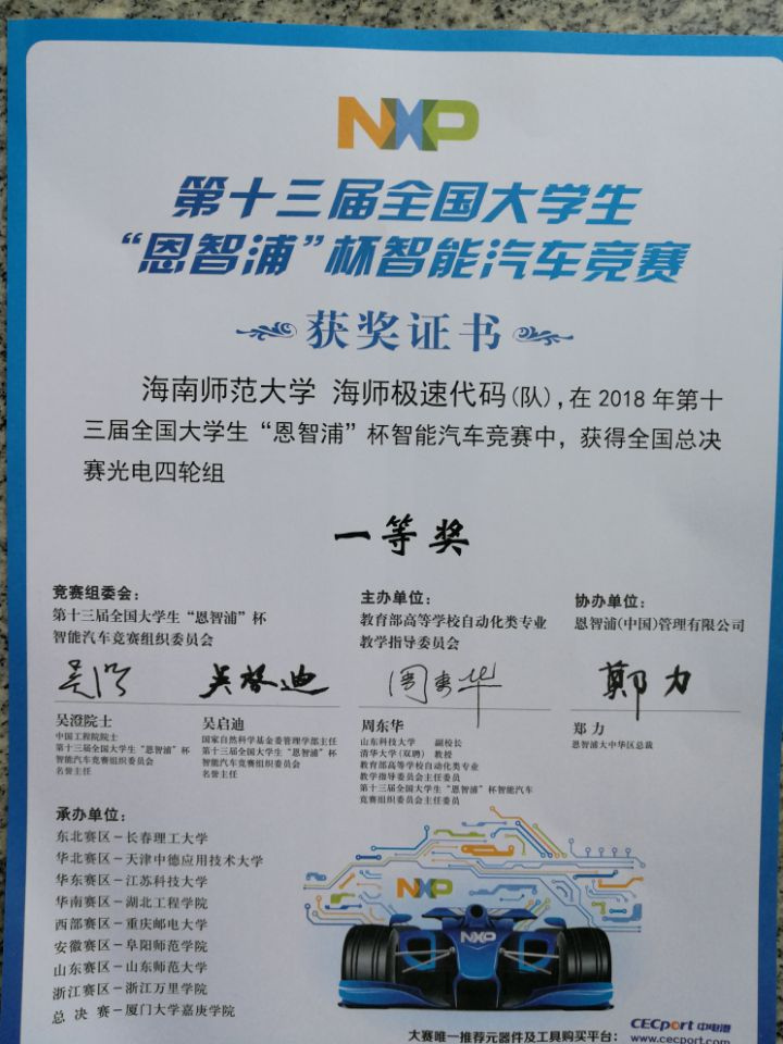 8月22日—25日,由教育部高等教育司委托教育部高等学校自动化类专业教学指导委员会主办的第十三届全国大学生“恩智浦”杯智能汽车竞赛全国总决赛在厦门大学嘉庚学院举行,顶级在线体育平台学子获一等奖。