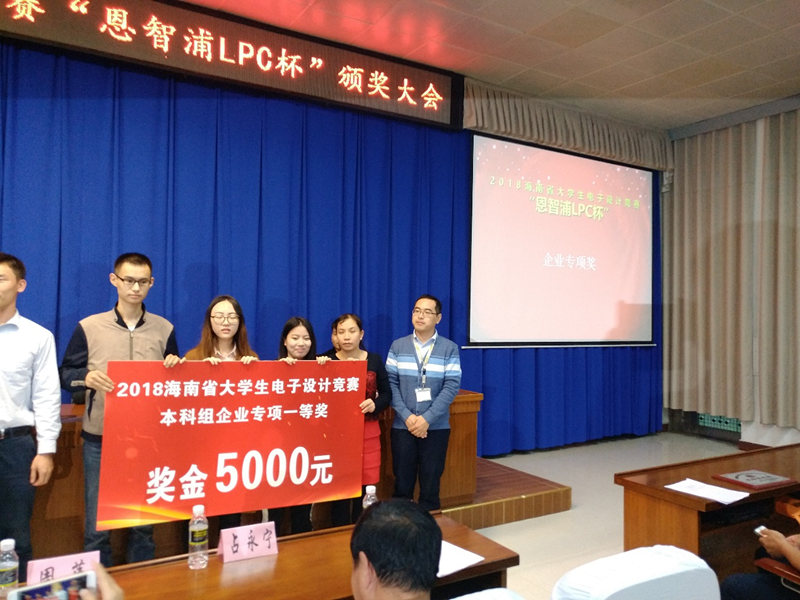 2018年12月26日下午,2018年海南省大学生电子设计竞赛“恩智浦LPC”杯在海南省琼海市海南软件职业技术学院举行工作总结暨颁奖大会,2018海南省大学生电子设计竞赛圆满结束。我院周萍老师、羊大立老师和颜丽娜老师以及我院参赛学生优秀队代表海南师范大学参加了颁奖会,