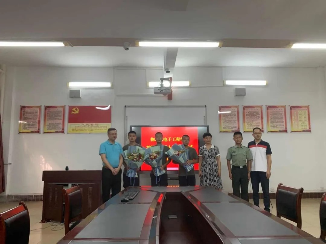 9月14日上午9点,为积极响应顶级在线体育平台大学生爱国主义教育和大学生应征入伍的工作部署,我院在物理楼201会议室举行2020年应征入伍新兵欢送仪式。学院彭鸿雁院长、副处级辅导员吴鹏、各年级辅导员、新兵代表及学生代表参加了欢送仪式。会议由副处级辅导员吴鹏主持。