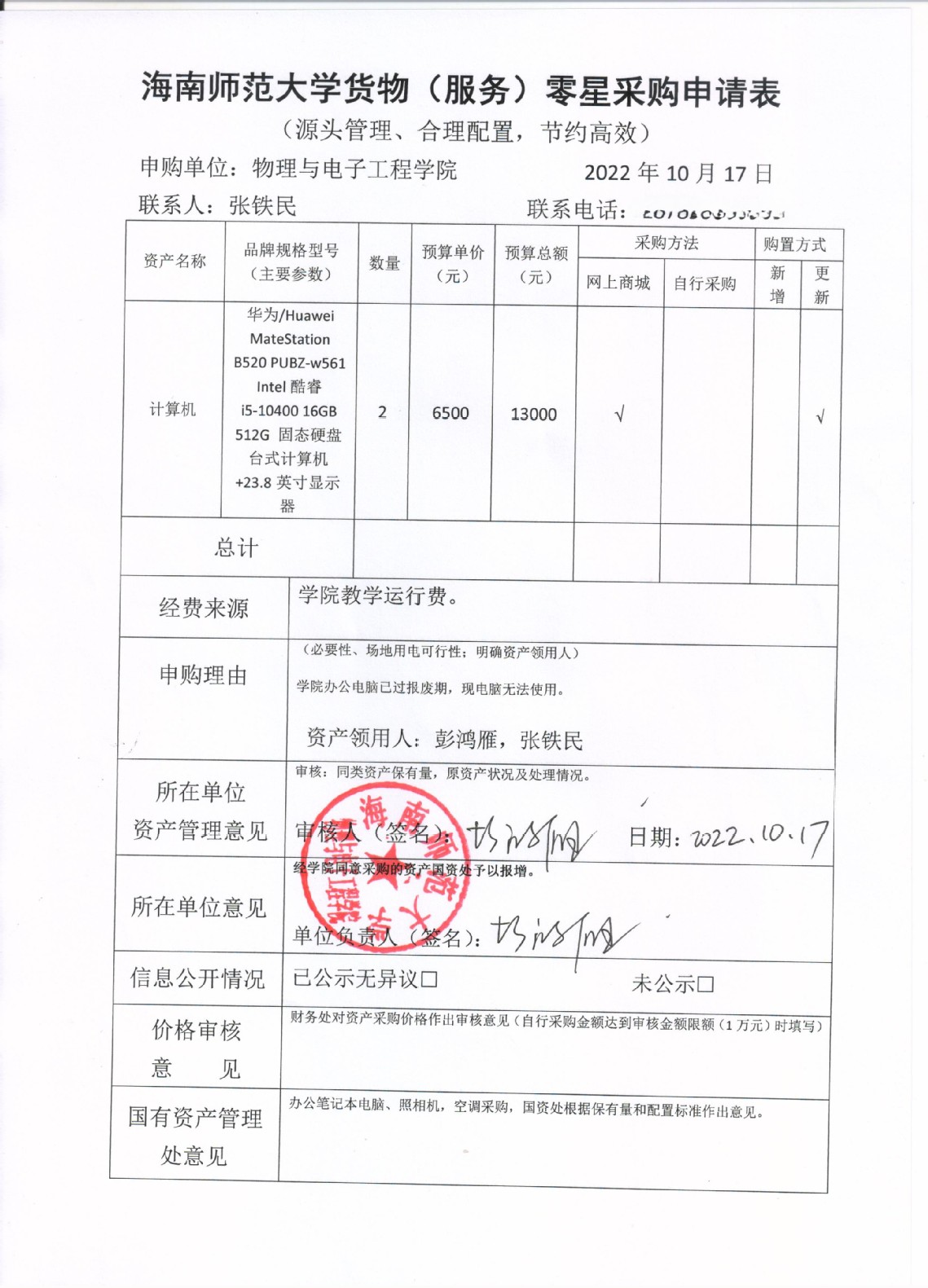 K云体育官方入口急需采购办公电脑,公示如下,公示时间:2022年10月17日-10月20日。