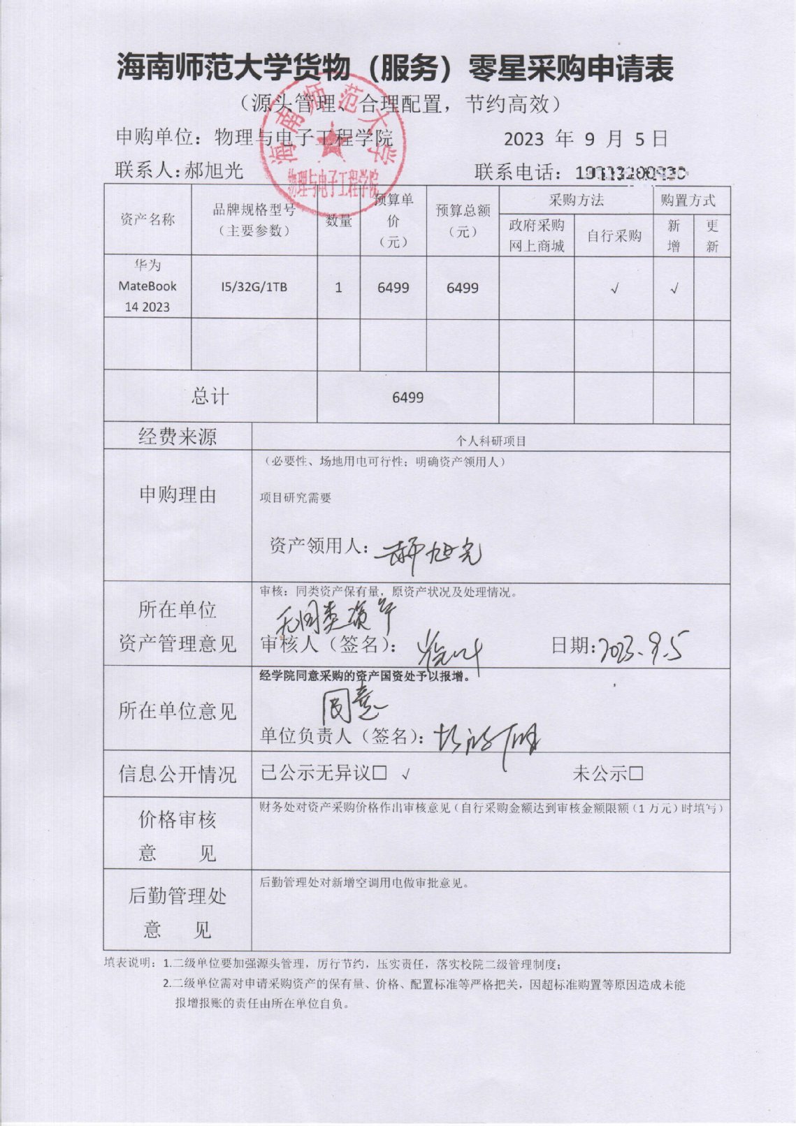 K云体育官方入口郝旭光老师因项目研究需要,购买电脑一台,公示时间:2023年9月5-9月8日。