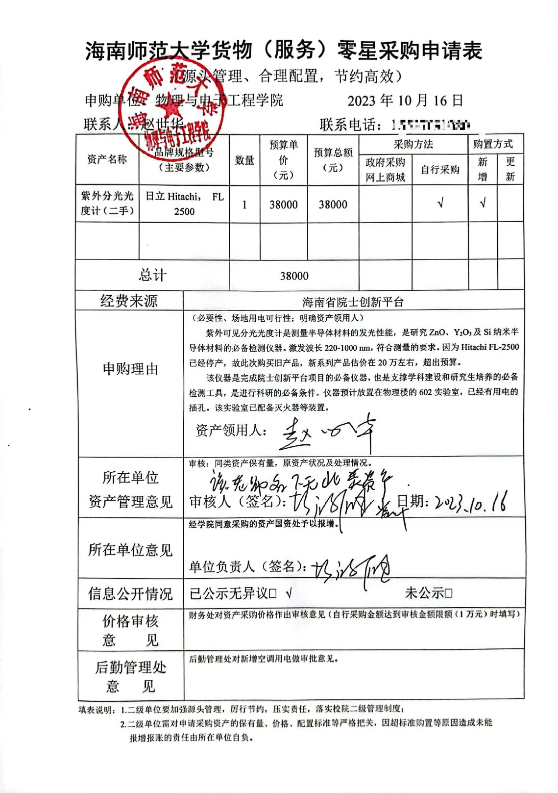K云体育官方入口赵世华老师采购实验设备,公示如下,公示时间:2023年10月16-10月19日。