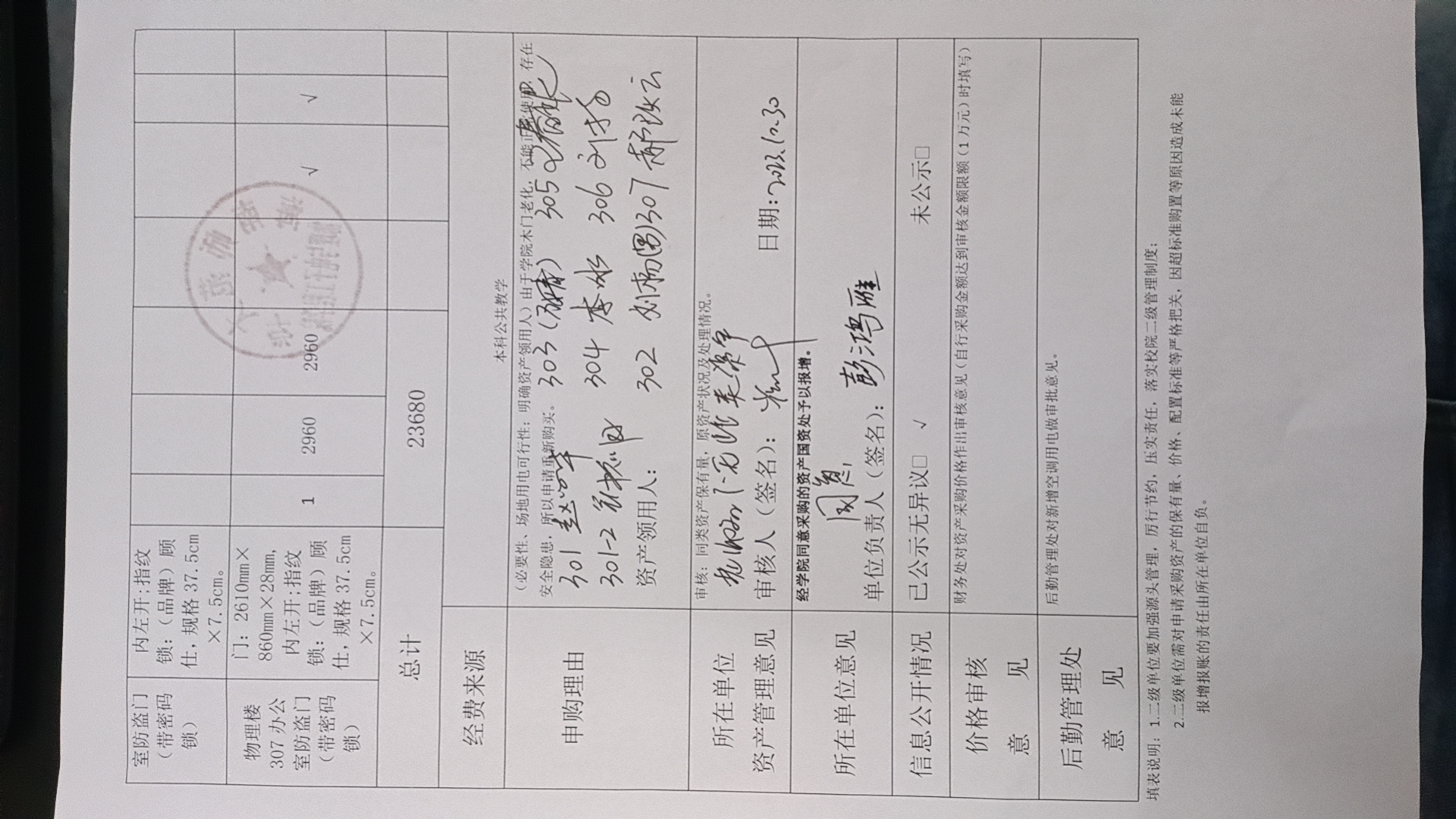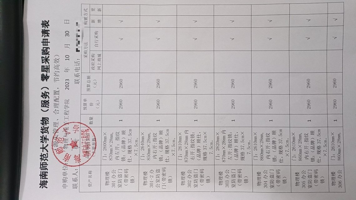 K云体育官方入口(物理楼)301、301-2、302、303、304、305、306、307办公室,采购防盗门(含密码锁),公示如下,公示时间:2023年10月30-11月2日。