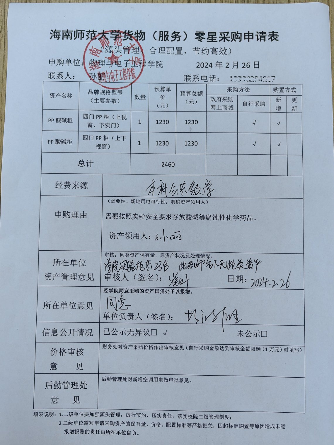 K云体育官方入口孙丽购买实验设备,公示如下,公示时间:2024年2月26-2月29日。