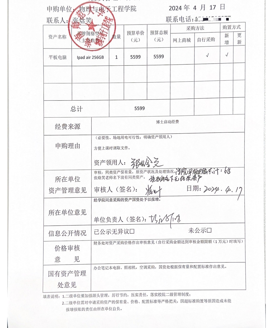 购买实验设备,公示如下,公示时间:2024年4月17日-4月22日。