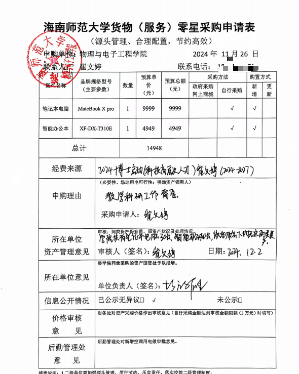 K云体育官方入口崔文婷购买办公设备,公示如下,公示时间:2024年12月2日-12月5日。