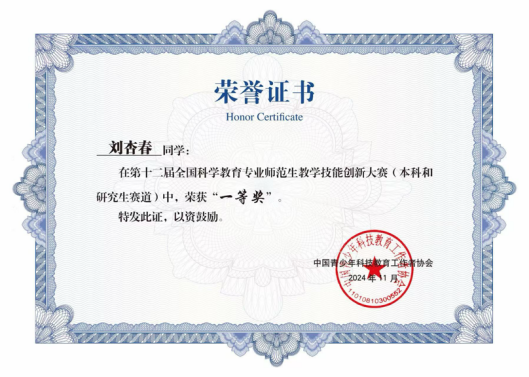 全国科学教育专业师范生教学技能创新大赛是由中国青少年科技教育工作者协会主办的一项重要赛事,旨在加强职前科学教师创新精神和实践能力的培养,推进学前与小学科学教育的贯通,不断提高我国科学教师的培养质量。在比赛中获三等奖(含)以上的,可以申请直接认证为初级青少年科技辅导员。