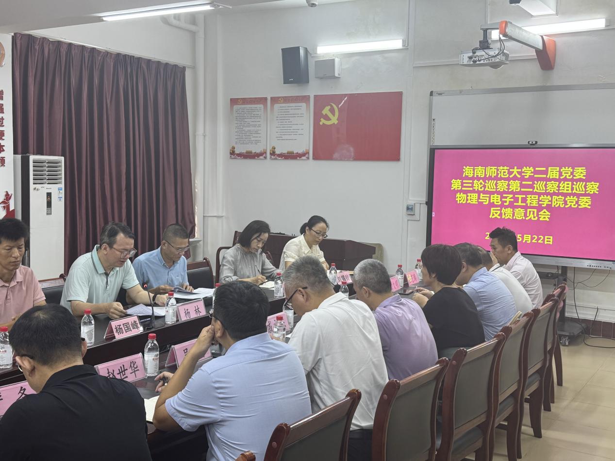 根据校党委巡察工作统一部署,5月22日上午,二届党委第三轮巡察第二巡察组巡察物理与电子工程学院党委反馈意见会在南校区物理201会议室举行。校党委巡察工作领导小组成员、校纪检副书记、校纪检监察二处处长郑贤出席会议并讲话,第二巡察组组长杨林、副组长杨国峰及组员、学院党政领导班子成员、教师代表及科级以上干部等相关人员参加会议,组织部、巡察办负责人到会指导。会议由学院党委书记戚文东主持。