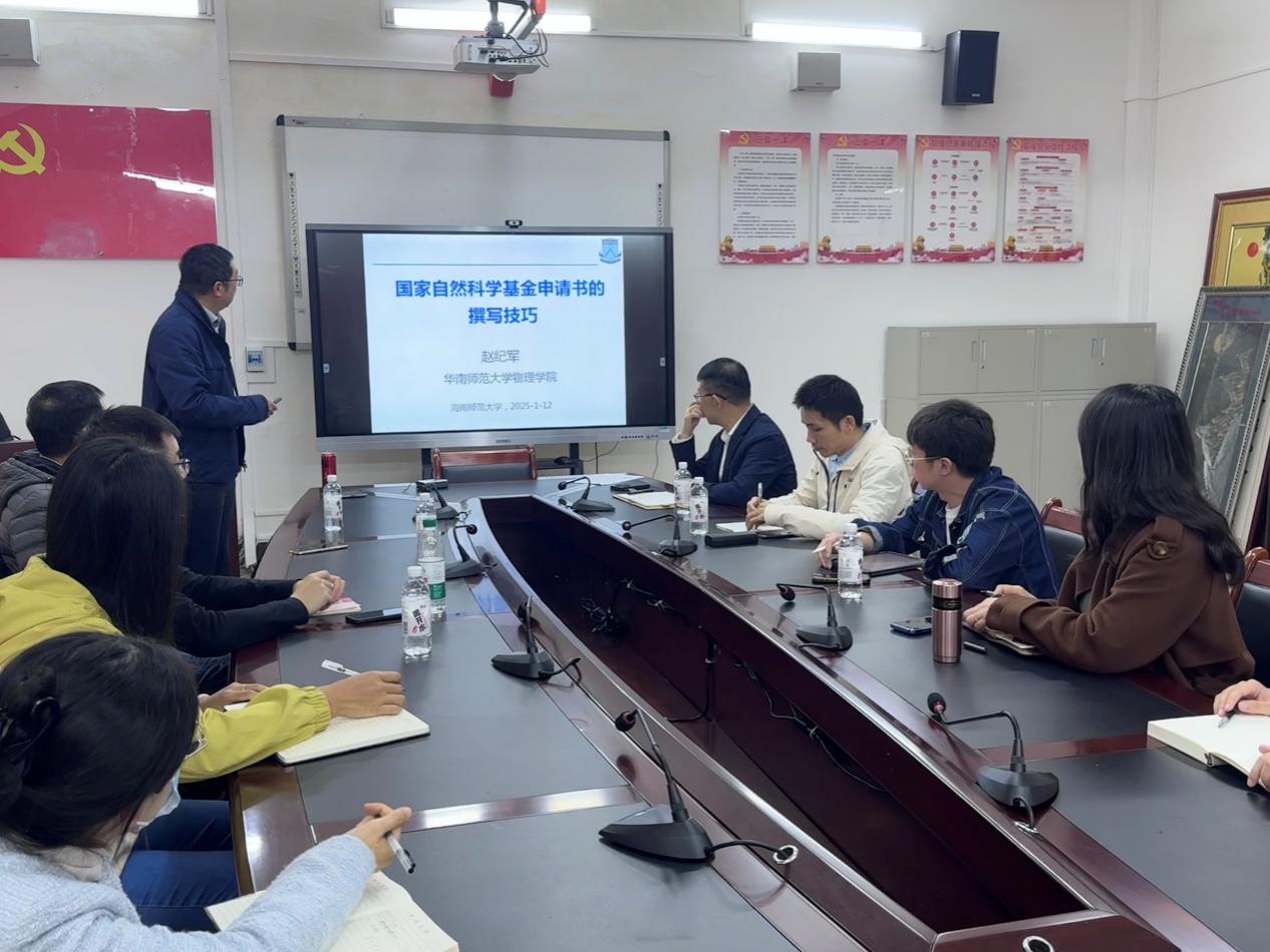 2025年1月12日下午,海南师范大学K云体育官方入口邀请到华南师范大学赵纪军教授,给学院年轻教师们做了一场聚焦自然科学基金申请与年轻教师发展的讲座。