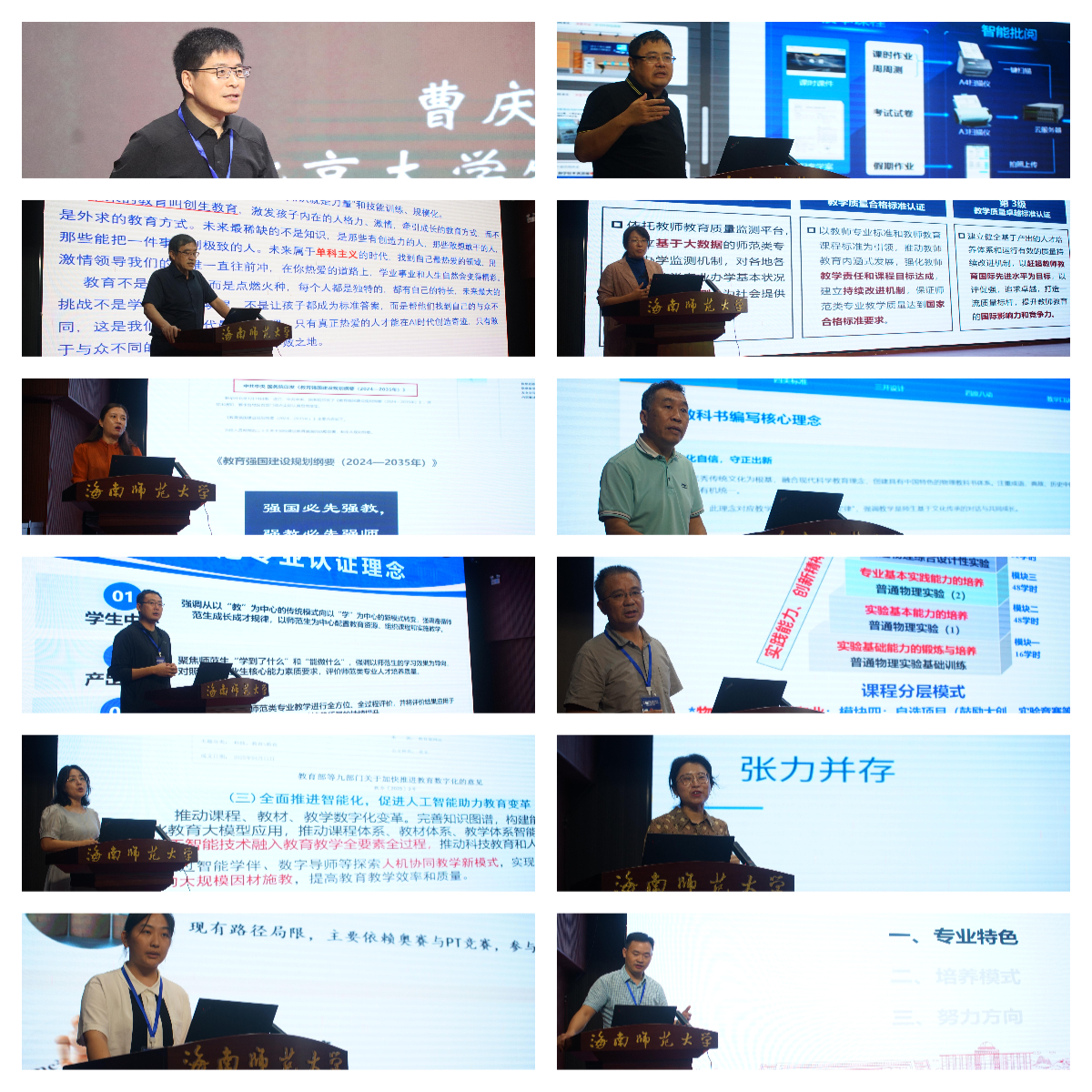 高健智解读了物理专业师范认证的核心标准,并分享了陕西师范大学在认证实践中的成功经验与创新举措;李金环阐释了师范认证的核心逻辑与要求,提出了以认证为契机推进专业内涵建设的路径,并指出了专业建设中的常见误区与突破方向;刘晓莹表示,人工智能技术能够降低学生对物理知识的理解门槛,助力精准补漏,同时让教师有更多精力专注于学生思维培养与创新能力提升,推动教师角色从 “知识的传授者” 向 “学习的引导者” 转变;李银介绍了AI技术在辅助 “ETA四美三开” 教学理念落地中的应用,实现了理论向可操作、可量化教学环节的转化,增强了教育理论的实践价值;刘自然阐述了 “双核共生” 培养模式的构建背景与核心内容,提出通过动态分流机制,依据学生志趣与潜能实施精准培养;吴波分析了AI在中学教育中的应用场景、实际影响及伦理考量,认为其在提升教学效率、推动教育创新变革、培养学生未来素养方面具有重要作用;刘金梅结合数智赋能教育的背景与趋势,剖析了物理教师数字化教学能力的构成及相关工具与资源的应用,强调其对物理教育创新变革的推动作用;李丰果围绕创新实验教学展开分享,解读了相关课程设计,并拓展了创新实验教学方法的应用场景,认为其能有效培养学生实践能力与创新能力;陶进针对 “核心素养导向下物理师范生‘探究+应试’双轨培养模式” 进行了专题分享,为解决传统物理师范生培养中 “重理论轻实践”“重应试轻素养” 的突出矛盾提供了理论指导;王欣瑶以《电磁学》课程为例,分享了以创新人才培养为目标的大中学物理衔接路径探索成果;曹庆宏梳理了物理教育中心的历史转移轨迹,分析了转移的核心驱动因素,并对未来物理教育发展趋势进行了展望,为人才培养工作提供了新的启发。