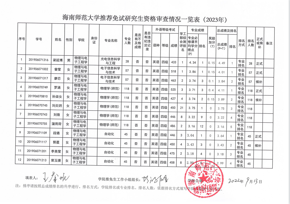 根据教育部与教育厅有关文件精神及《海南师范大学推荐优秀应届本科毕业生免试攻读硕士研究生工作实施办法》、《K云体育官方入口推荐优秀2023届本科毕业生免试攻读硕士学位研究生推荐考核实施办法》,经资格审查、...