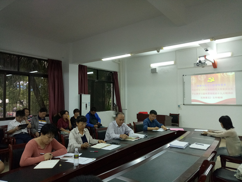 11月7日下午3点K云体育官方入口召开全院教职工大会,学习传达《中共海南师范大学委员会关于认真学习宣传贯彻党的十九大精神的实施意见》文件精神。