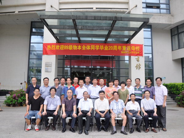 2013年7月26日,我院89级物理本科班全体同学毕业20周年重返母校,校友们兴趣勃勃的参观了校园和我院的实验室,感慨学校和我院的巨大变化。学院领导和部分老师跟校友们进行了座谈,并合影留念。