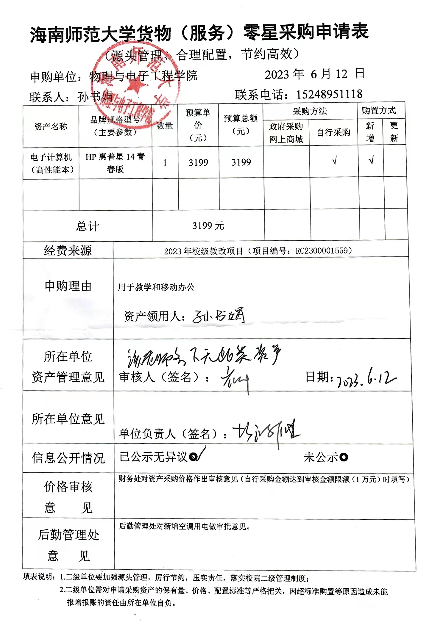 K云体育官方入口孙书娟老师购买教学、办公电脑一台,公示时间2023年6月12-6月15日。