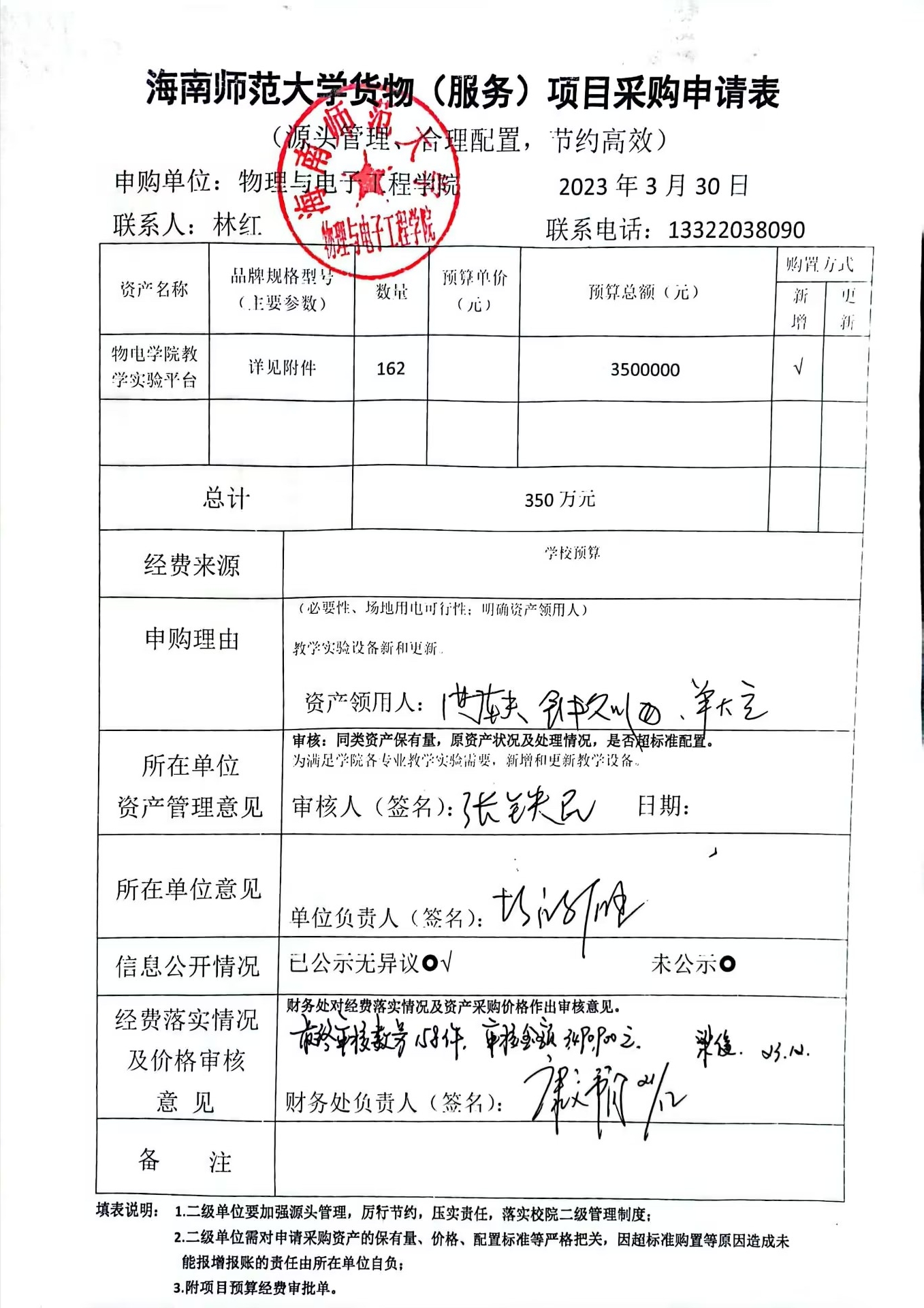 K云体育官方入口2023年教学实验平台专用设备采购公示如下,公示时间:2023年3月30日-4月3日。