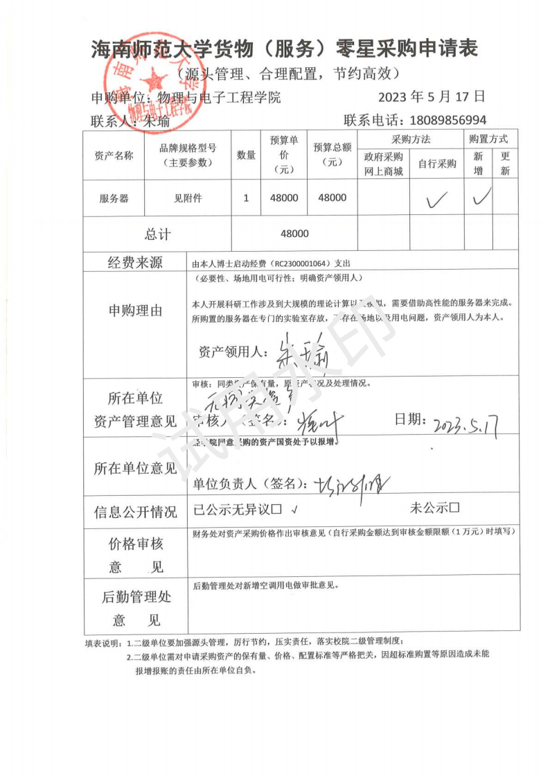 K云体育官方入口朱瑜老师采购科研设备,公示如下,公示时间:2023年5月17日-5月22日。