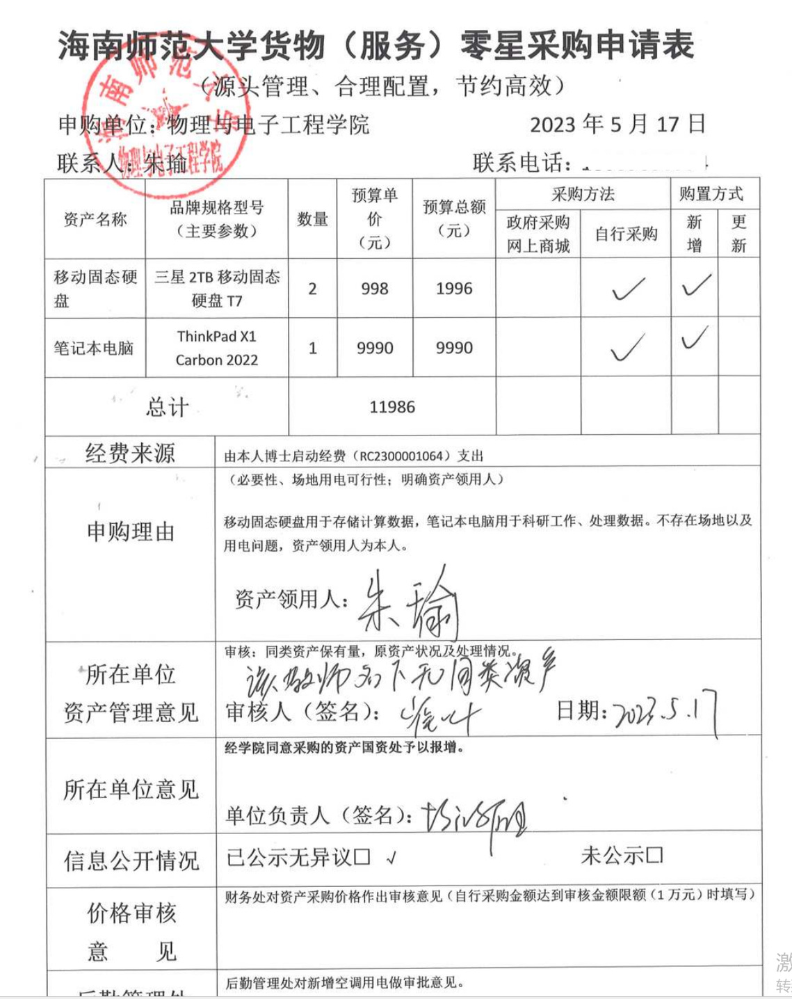 K云体育官方入口王艺臻采购实验电脑设备一台,公示如下,公示时间:2023年6月8日-6月12日。