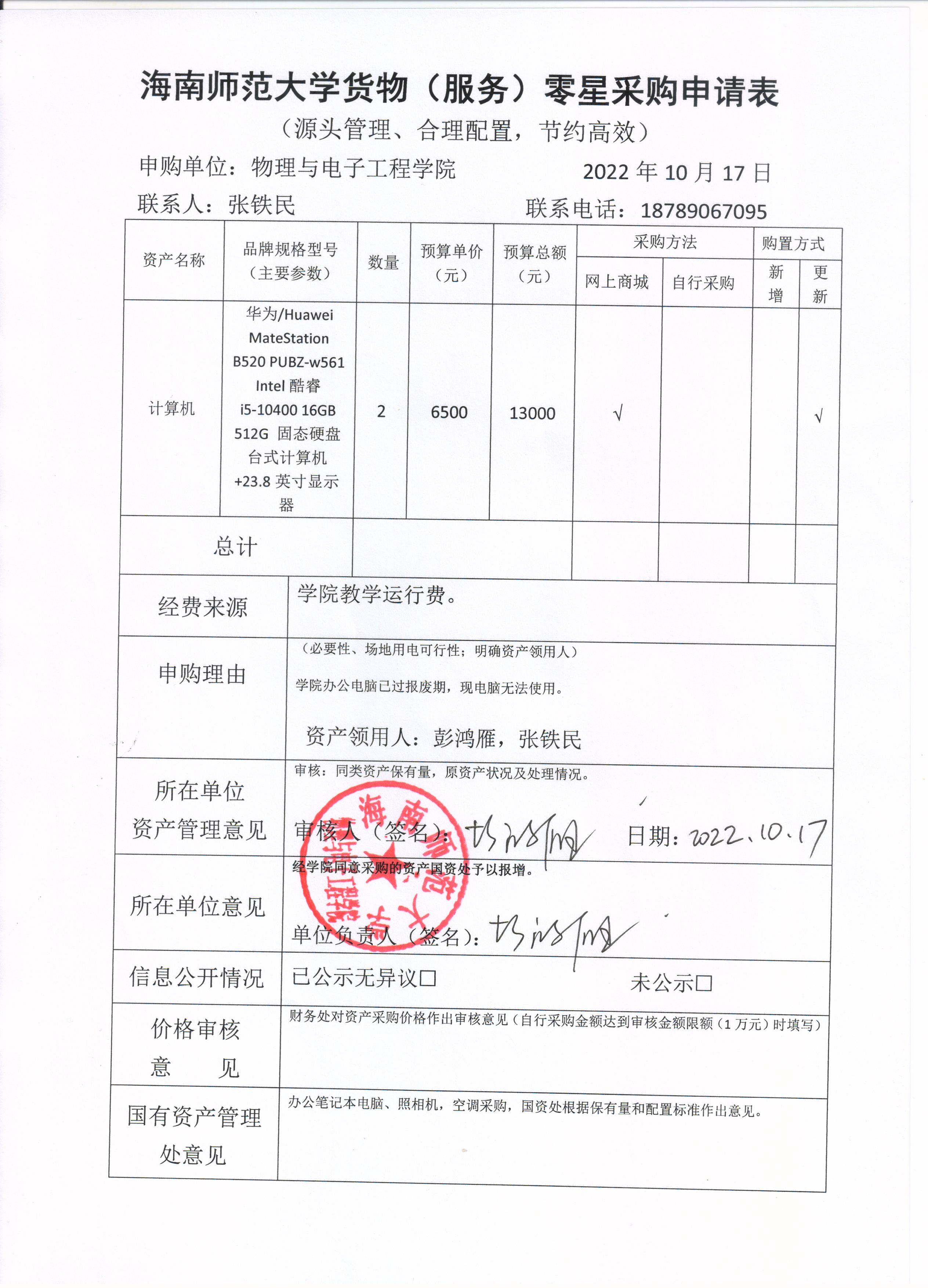 K云体育官方入口新入职辅导员苏畅老师急需采购办公设备,公示如下,公示时间:2022年8月27日-8月31日。