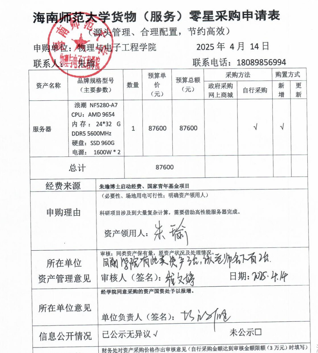 K云体育官方入口朱瑜购买实验设备,公示如下,公示时间:2025年4月14日-4月17日。