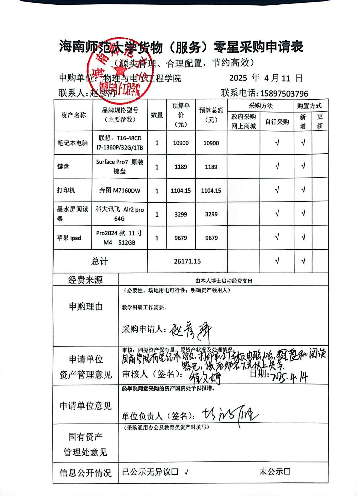 K云体育官方入口赵彦清购买实验设备,公示如下,公示时间:2025年4月14日-4月17日。