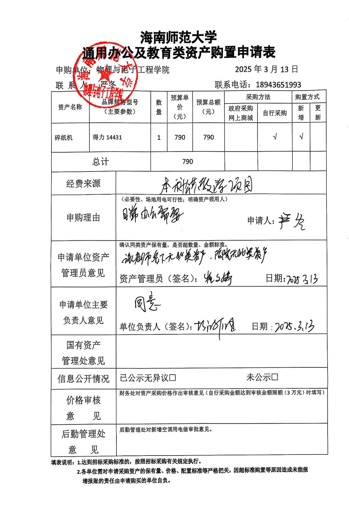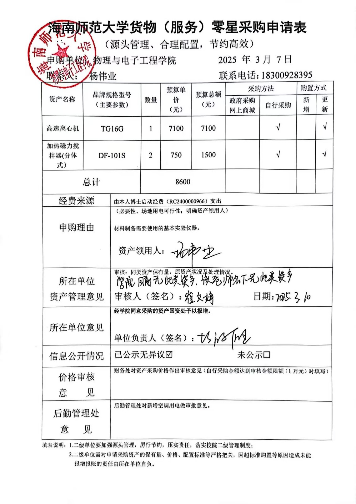 K云体育官方入口杨伟业购买实验设备,公示如下,公示时间:2025年3月13日-3月18日。
