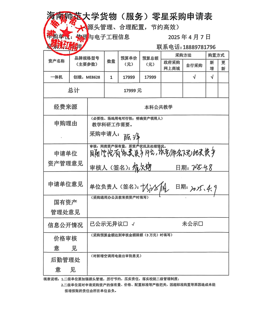 K云体育官方入口王艺臻购买办公设备,公示如下,公示时间:2025年4月9日-4月14日。